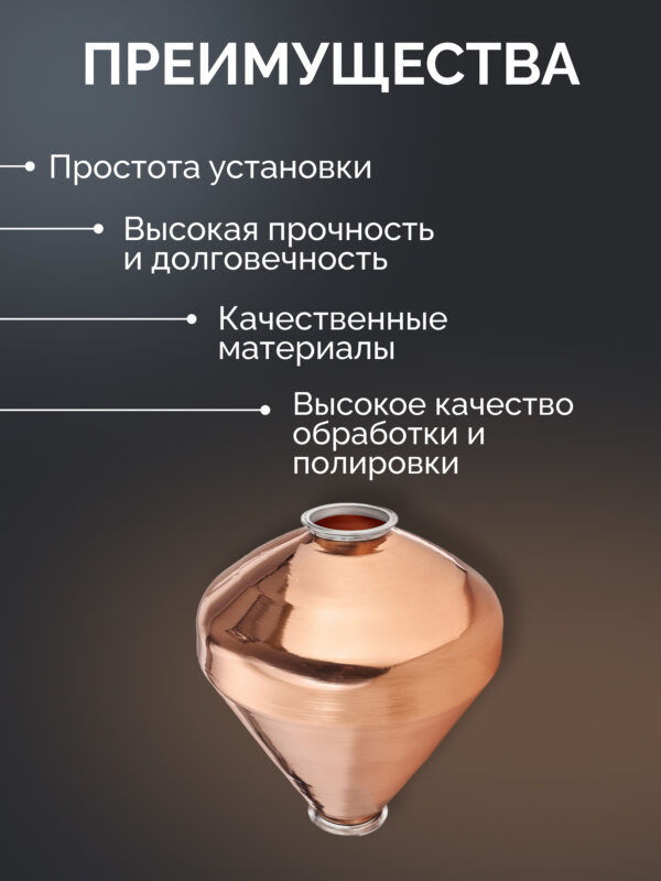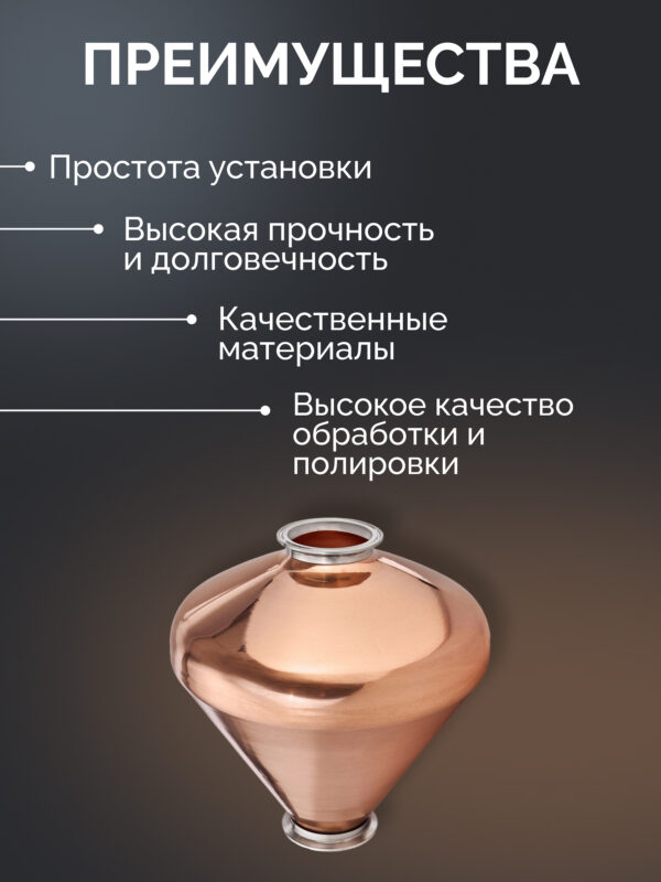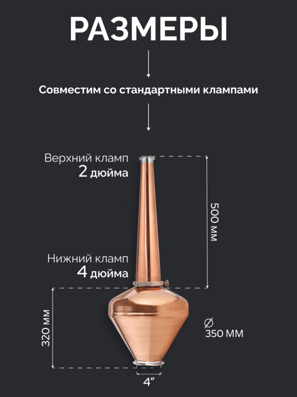 Вискарный шлем 4″ — «Distillex» 12л. с 4″-2″ медным конусом высотой 500 мм.