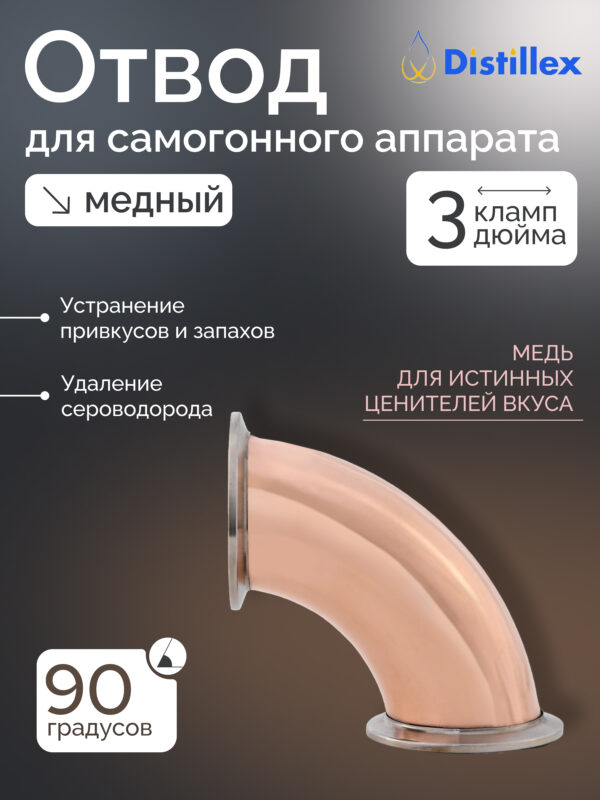 Медный отвод 3″, 90°